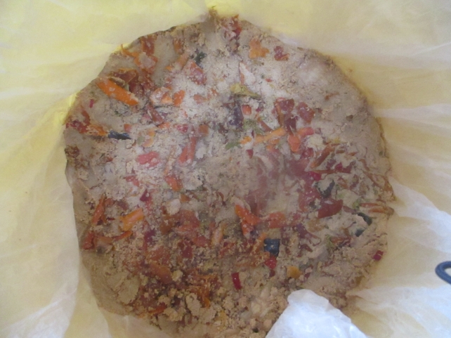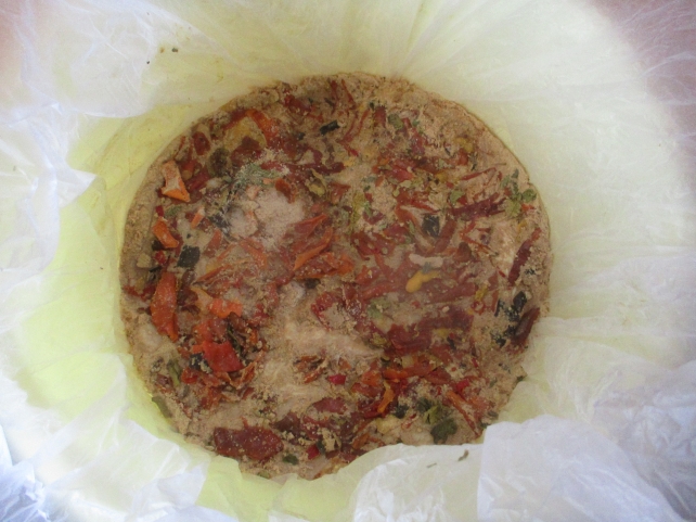 水抜き用に大根の葉を敷き詰めていましたので、大根の葉が水分を吸収してしんなりしていました。